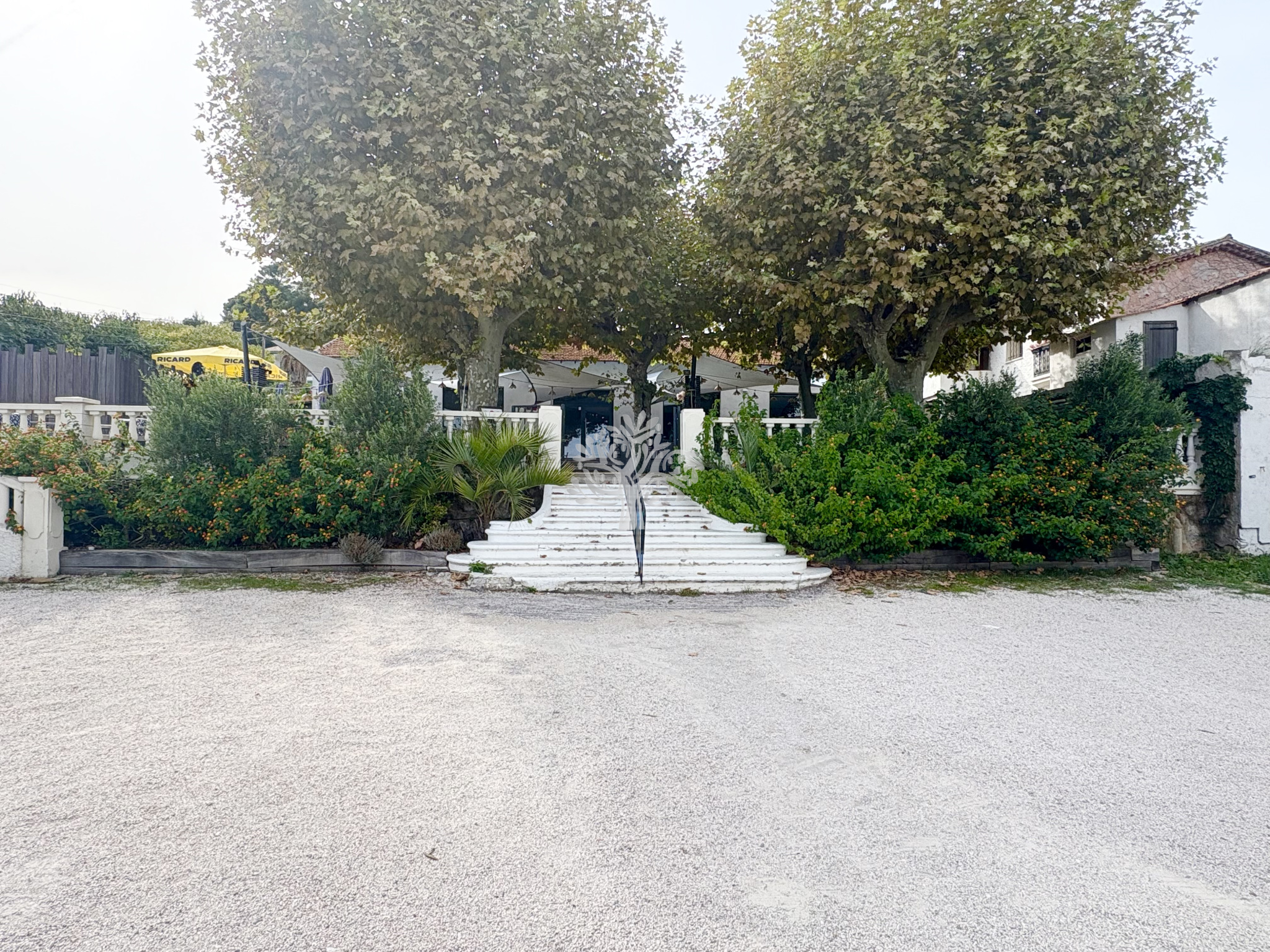 Les extérieurs offrent un grand parking de 400 m² permettant d’accueillir facilement la clientèle, une immense terrasse face à la mer ainsi que deux garages fermés.