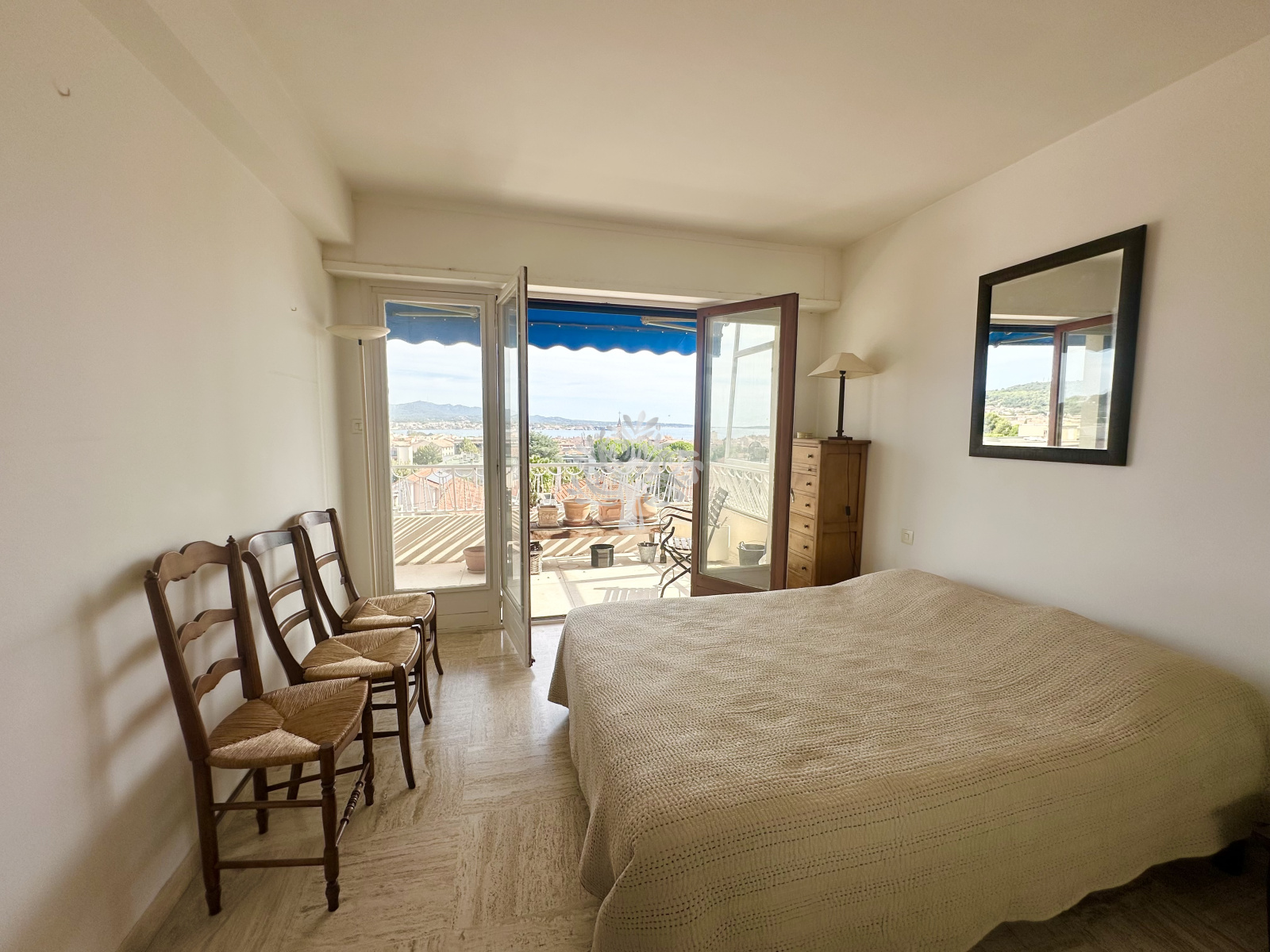 Situé au sein d'une résidence de qualité, au 3ème et dernier étage, ce bien rare offre une pièce de vie lumineuse ouvrant sur une terrasse ensoleillée avec vue mer, deux belles chambres dont une avec la vue mer , une cuisine indépendante avec une grande loggia idéale pour du rangement, une salle de bain ainsi que des WC séparés.