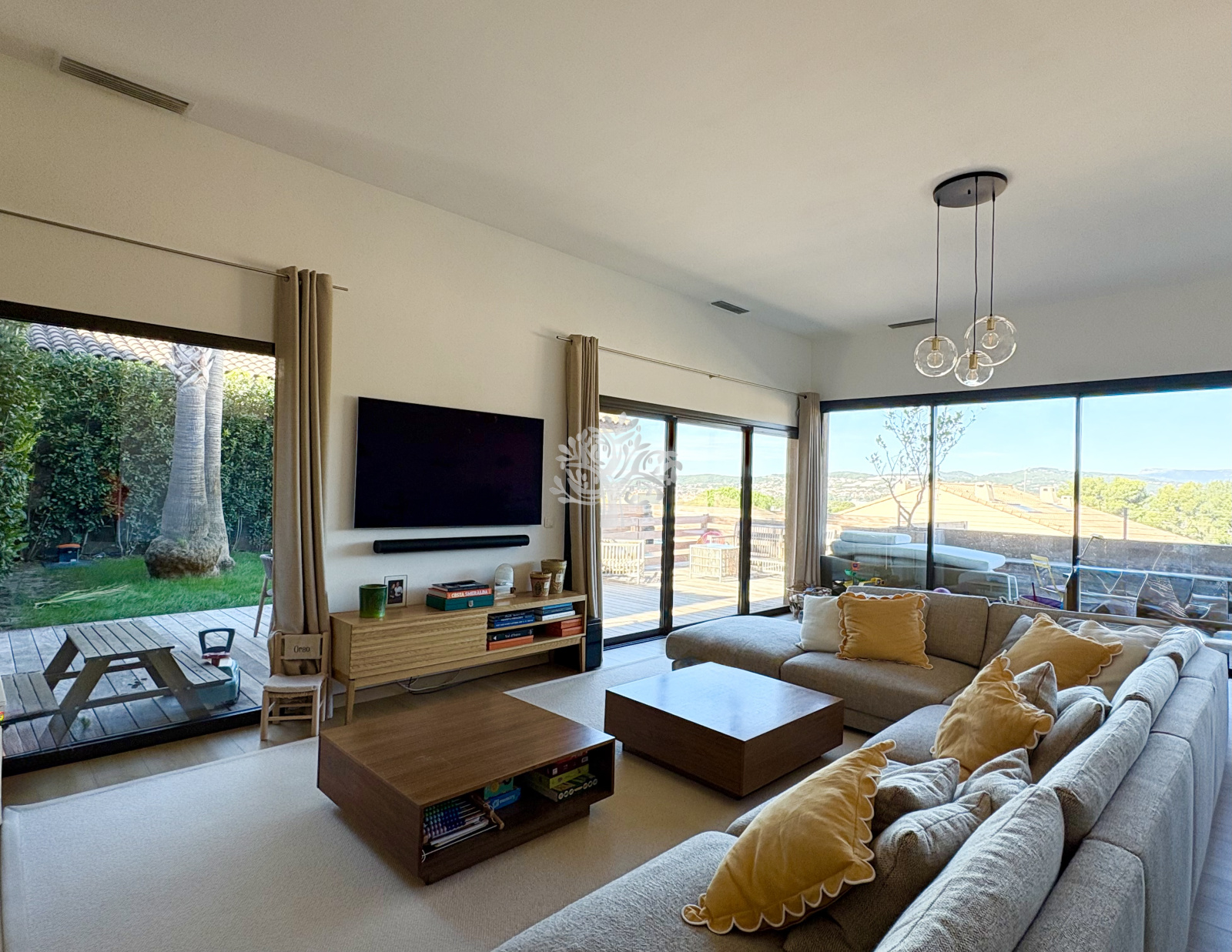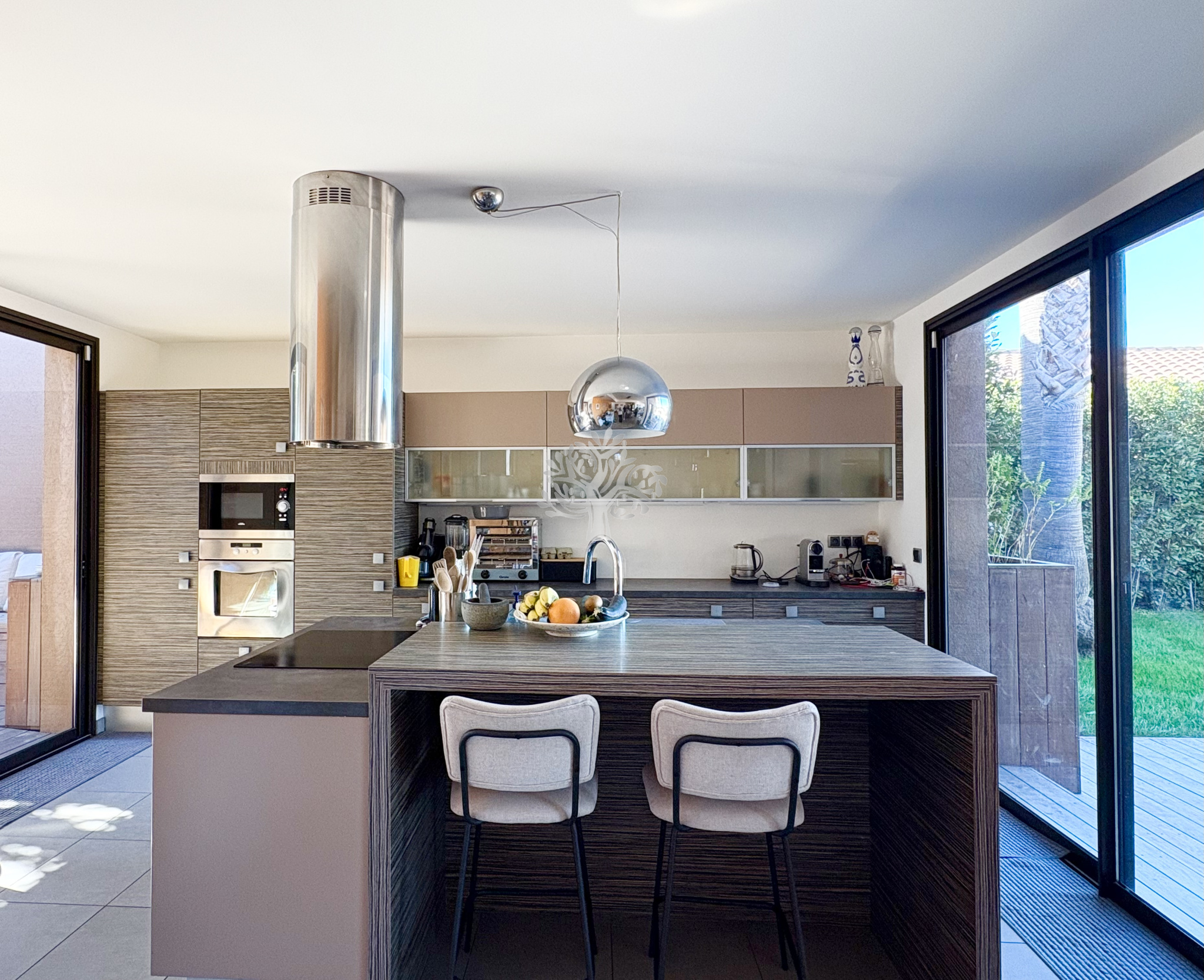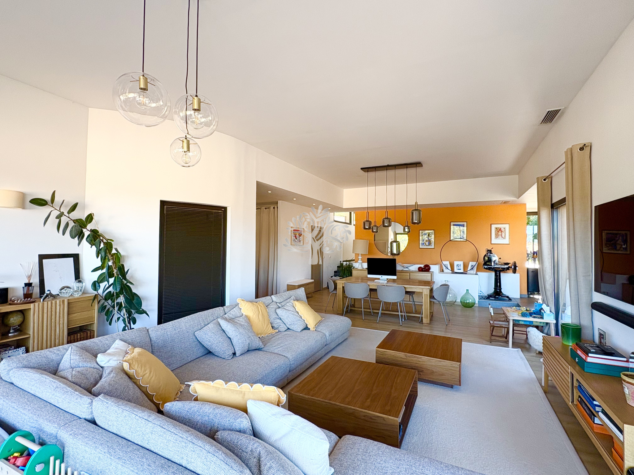 Vous apprécierez son spacieux séjour avec cuisine américaine, un espace lumineux grâce à ses grandes baies vitrées ouvertes sur le jardin.