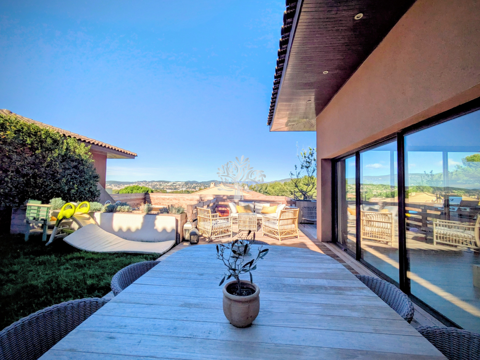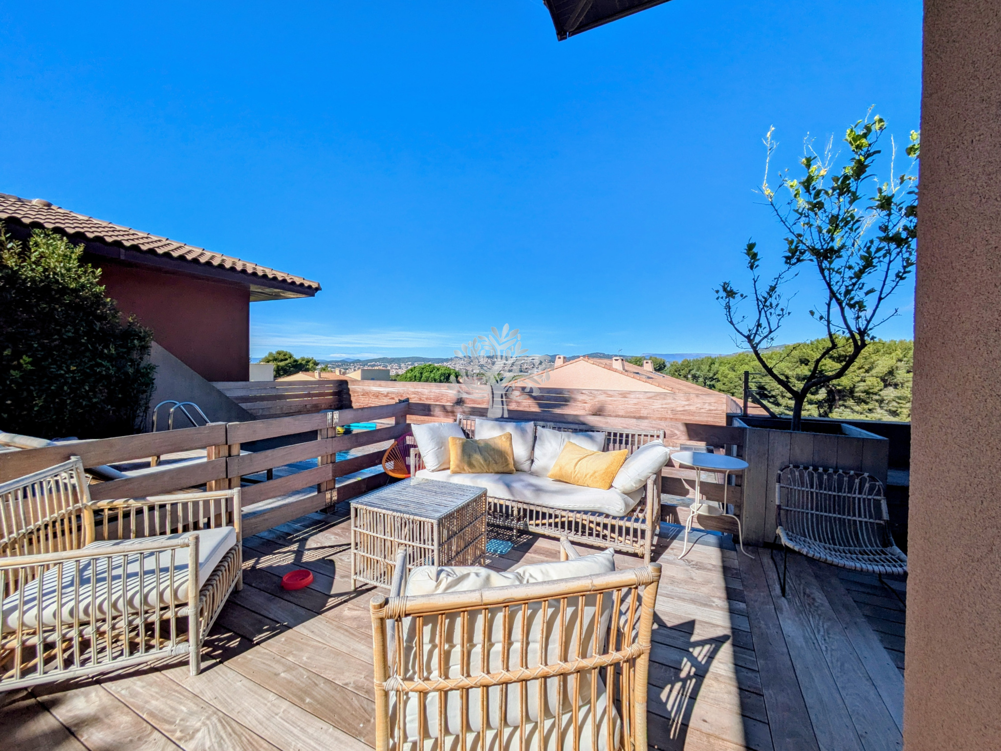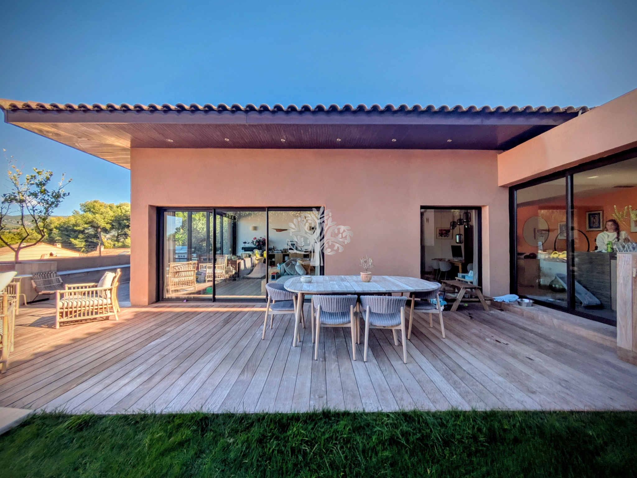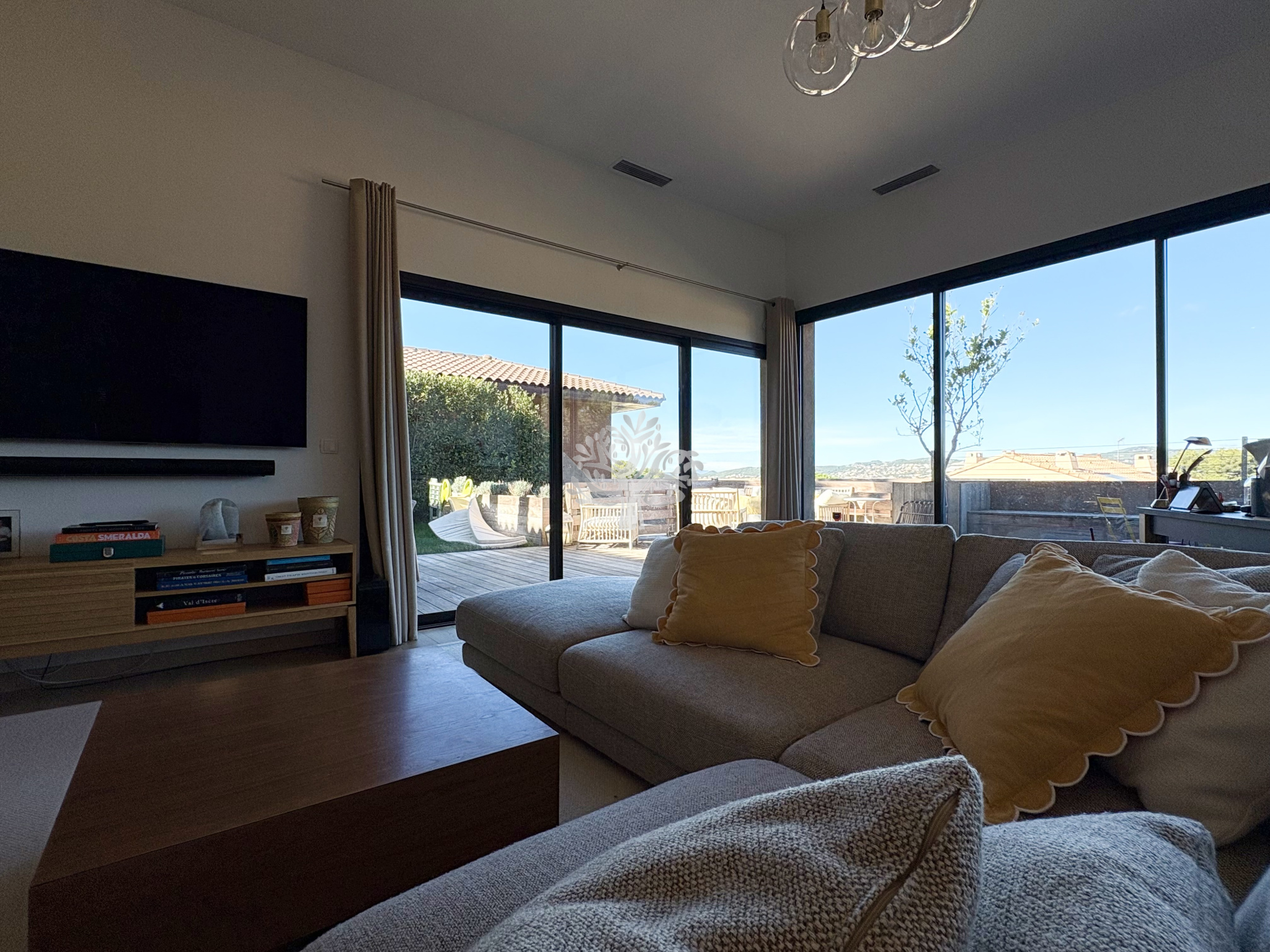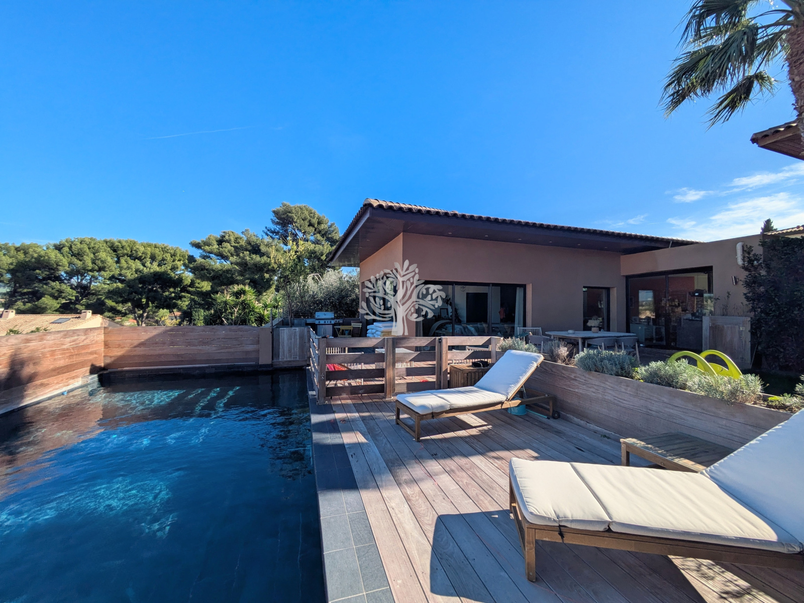 L'agence de l'Oliveraie vous présente cette villa moderne avec piscine et grand garage, située dans le quartier de Beaucours, à Sanary-sur-Mer.