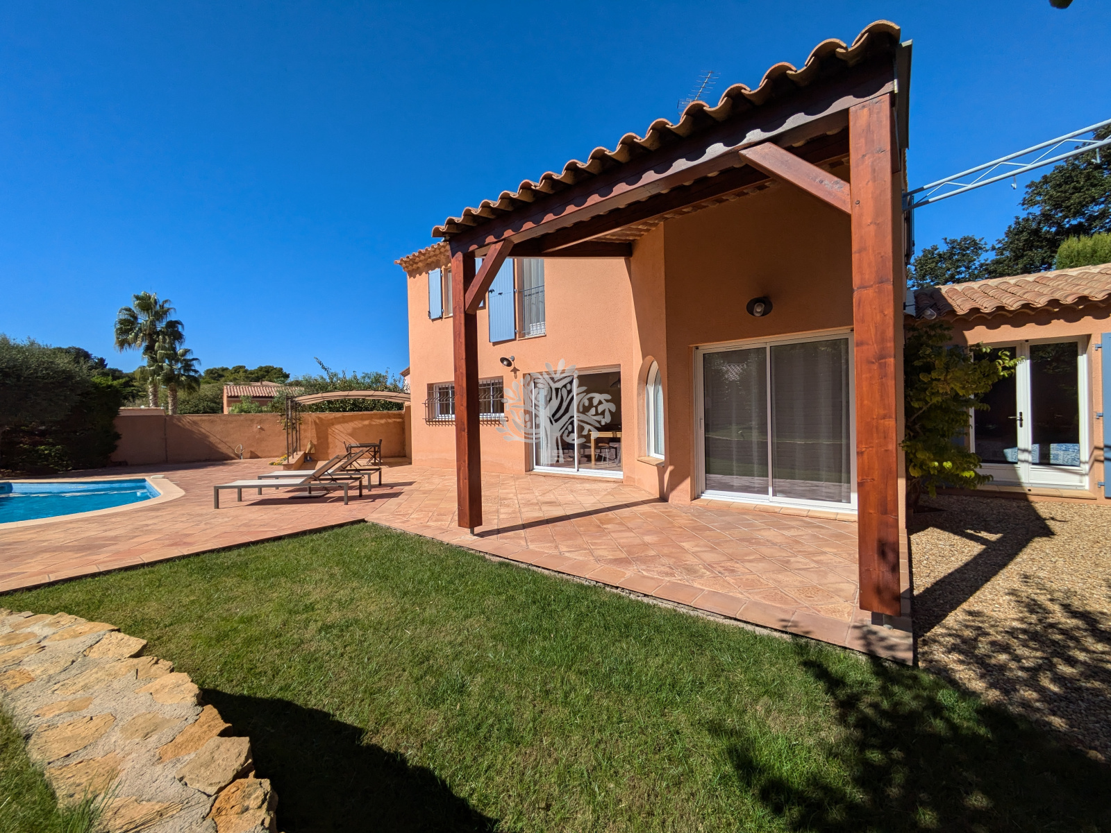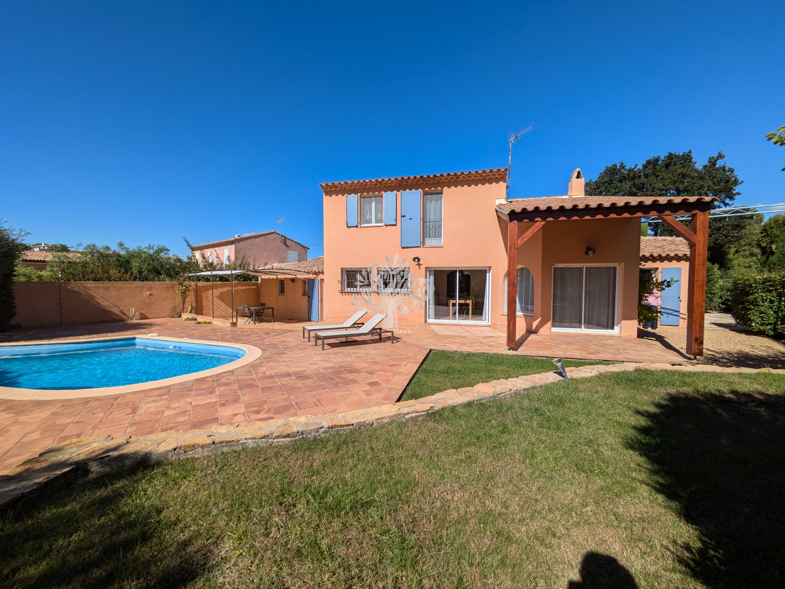 L'agence de l'Oliveraie vous présente cette villa de 140 m² avec piscine + double garage et cave.
