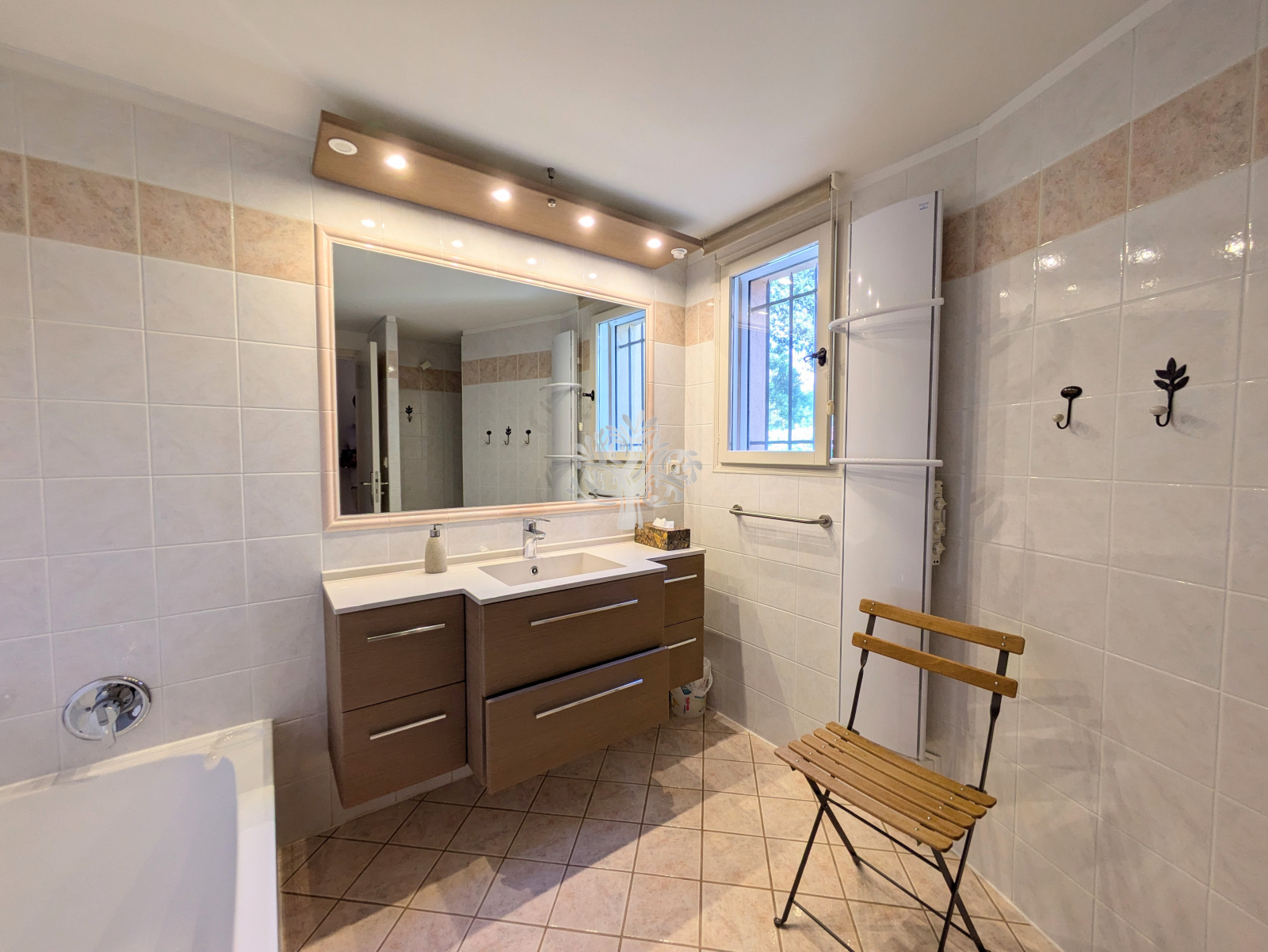 Les Prestations sont modernes avec un chauffage au sol (via Pompe à Chaleur récente), double vitrage, volets roulants, domotique.